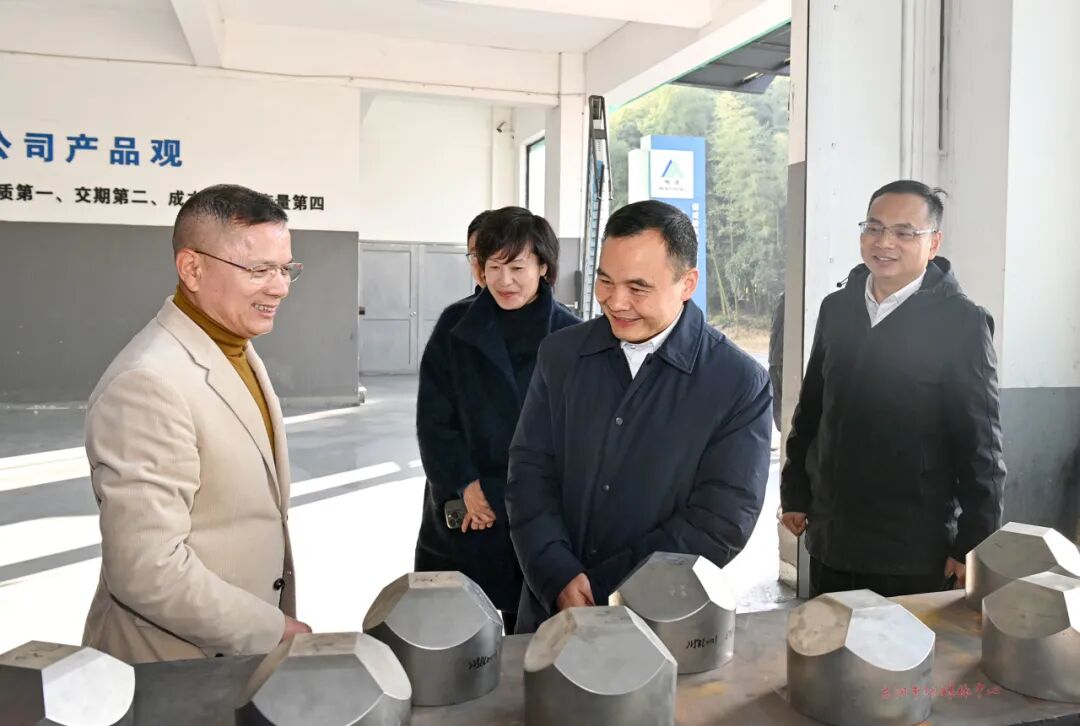 浙江恒成硬质合金有限公司专注于硬质合金领域三十多年,碳化钨合金辊环产品在全球市场占据重要地位。黄胜可参观了生产车间,和企业管理、科研人员深入交流,认真听取产品市场布局、科研人才引进、科技项目攻关、研发平台建设等情况。浙江恒成硬质合金有限公司非常重视科技创新,目前正携手高校开展关键技术研发攻关和企业研究院建设。黄胜可鼓励企业继续深耕细分领域,加大研发投入,高效推进成果转化,进一步提升产品核心竞争力,拓展更大市场空间。他同时要求相关部门积极主动做好服务保障,助力企业做大做强。