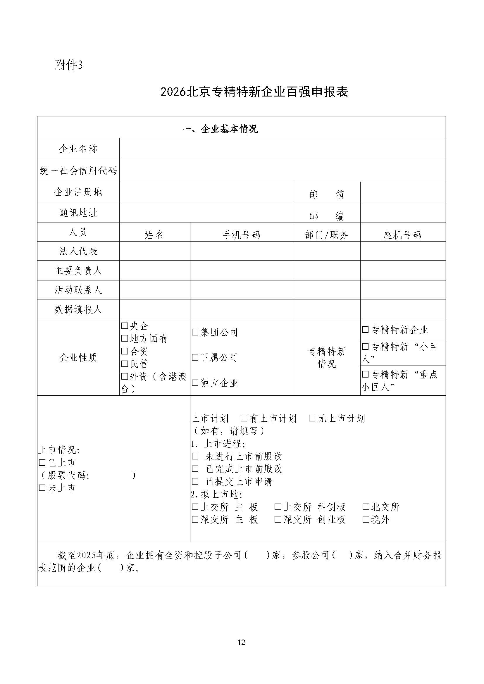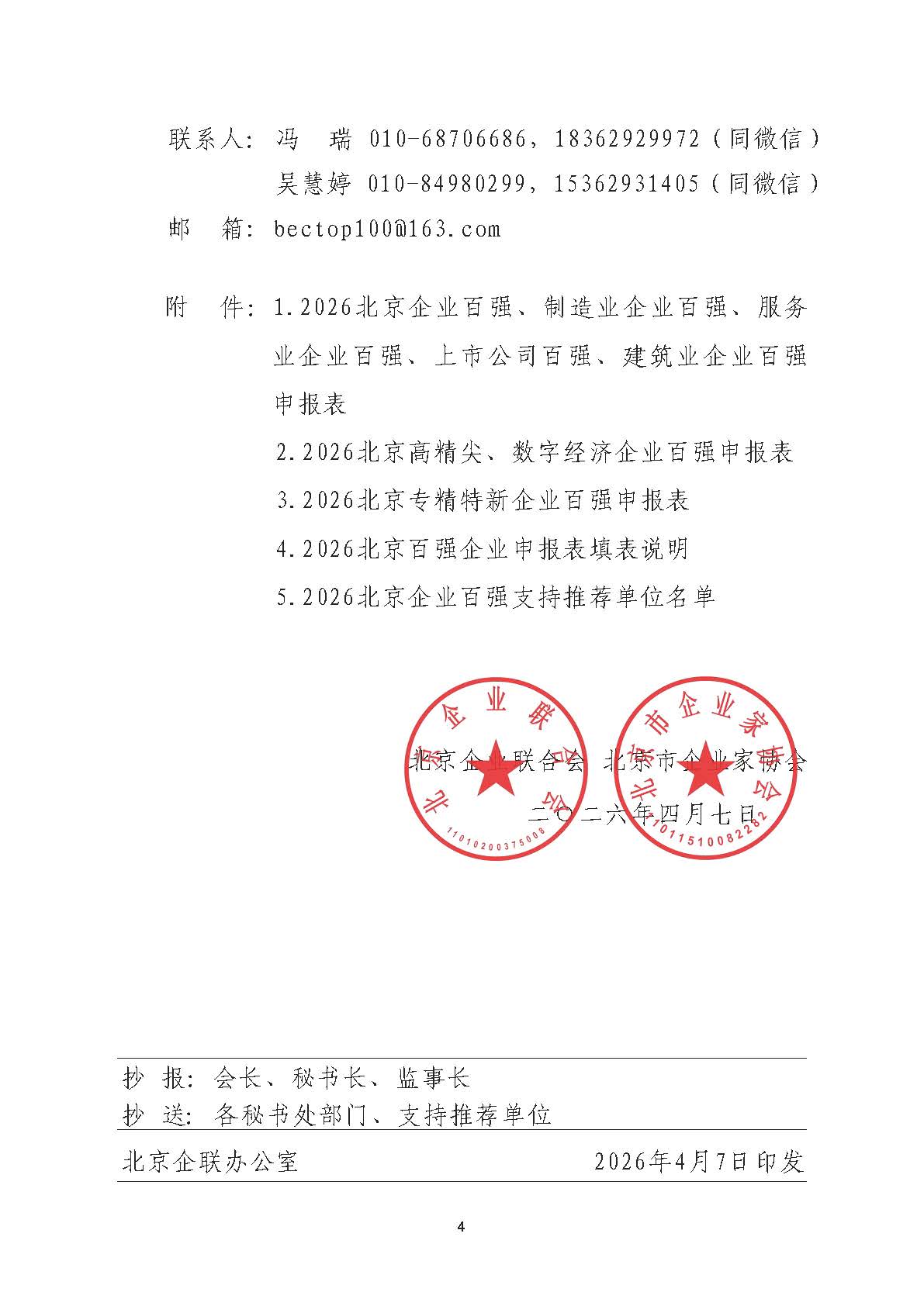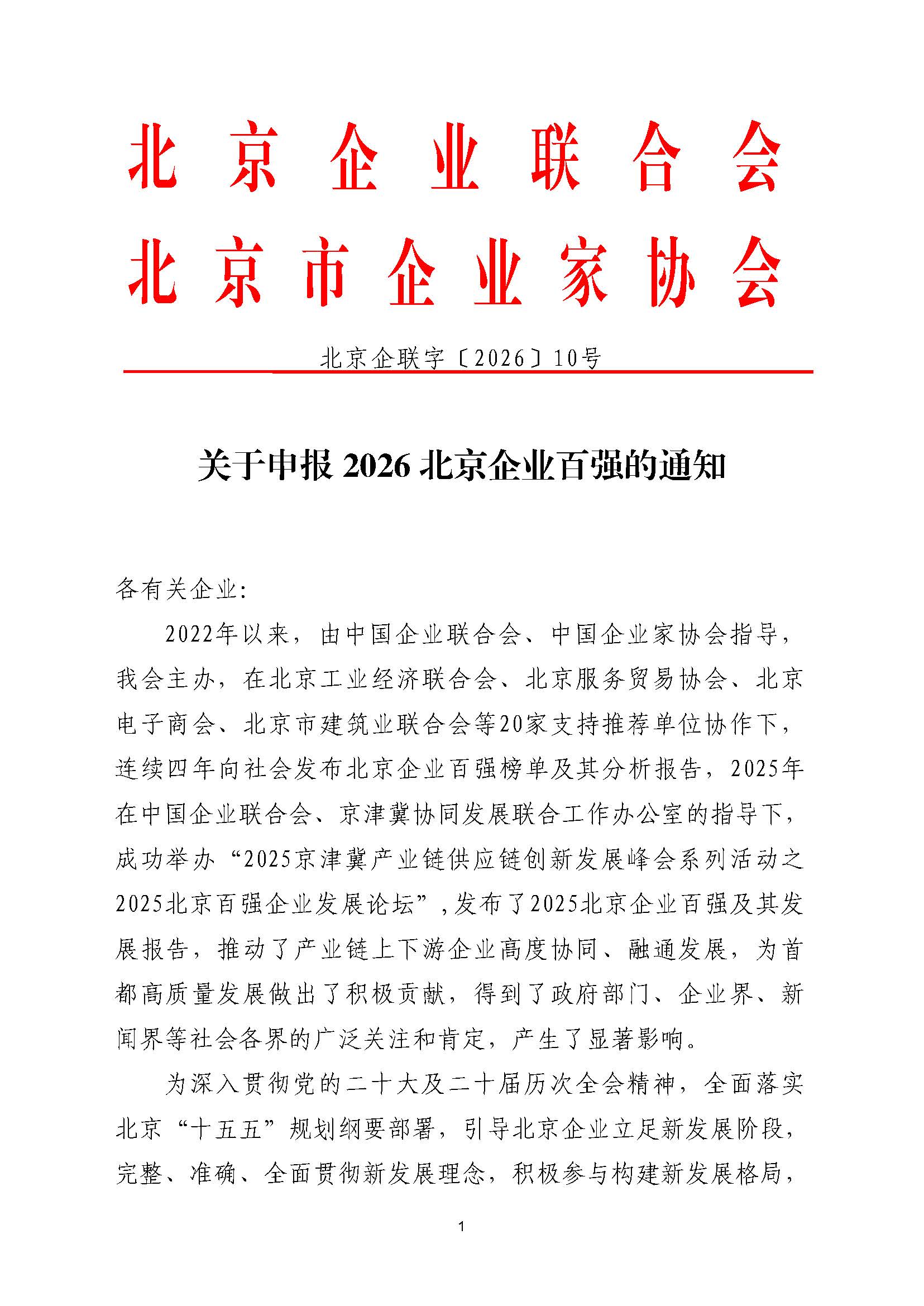 关于申报2026 北京企业百强的通知