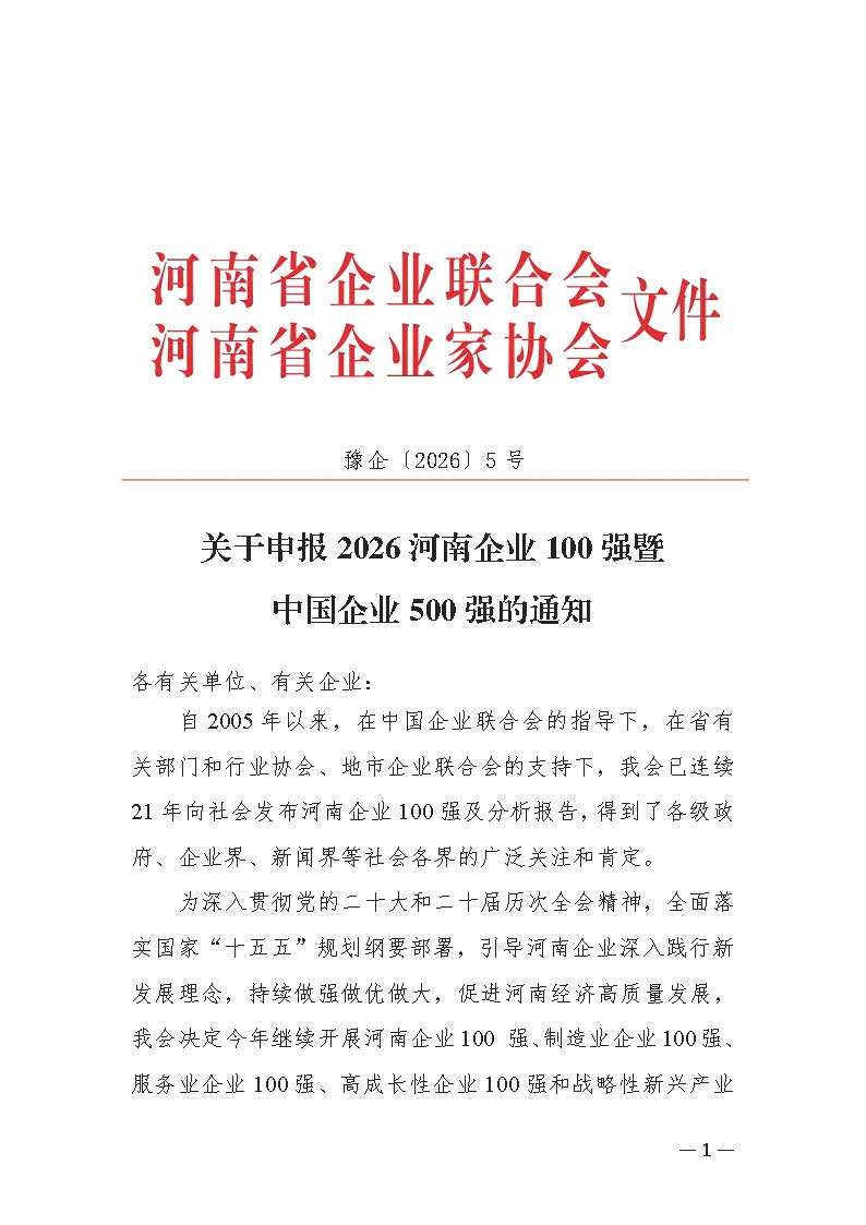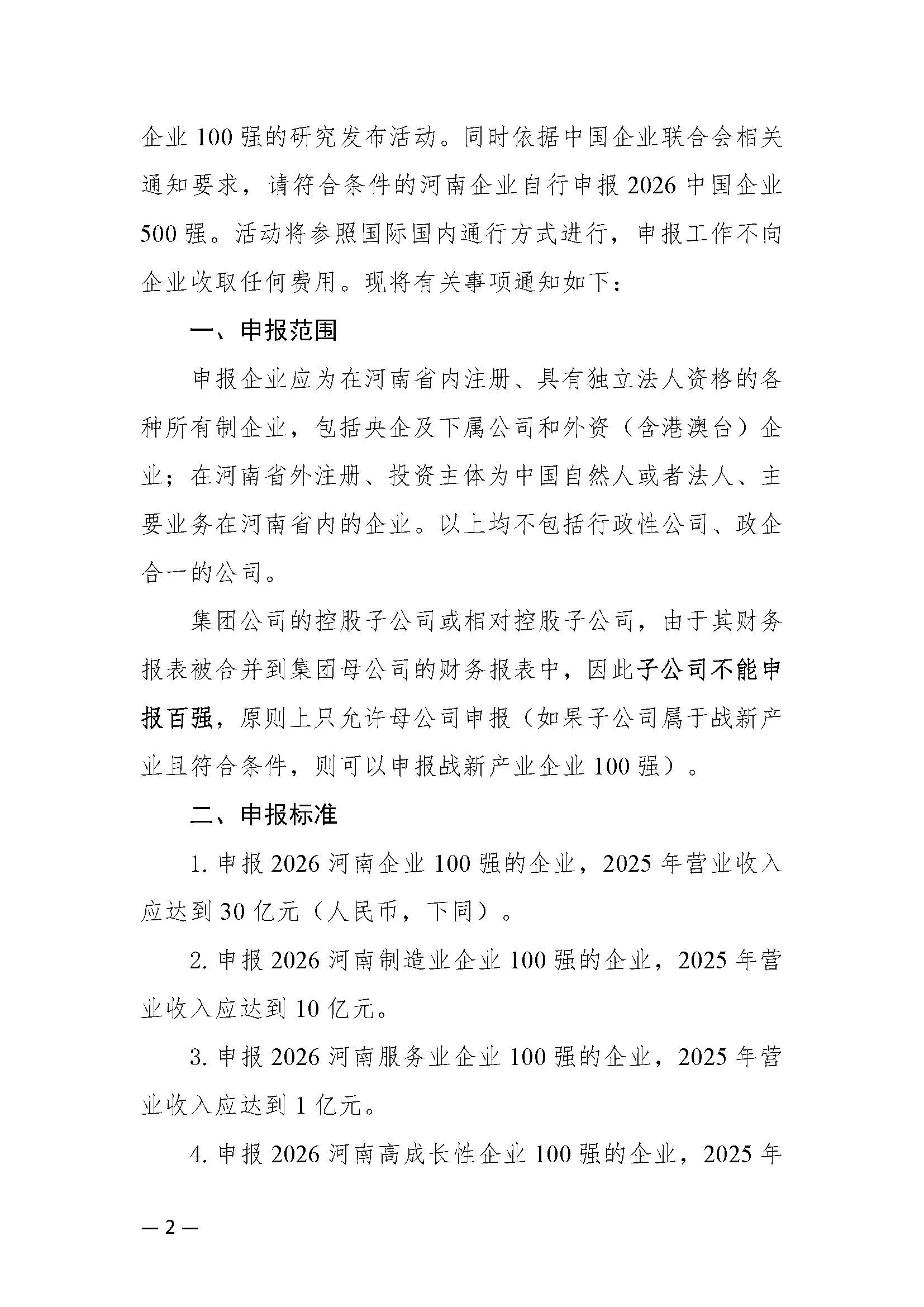 关于申报2026河南企业100强暨中国企业500强的通知.pdf